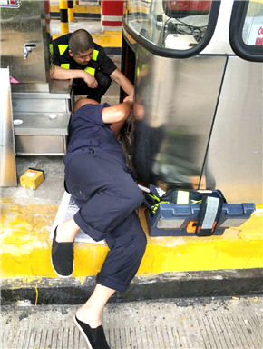 面對新的挑戰(zhàn),中心隊(duì)員毫不畏懼,憑著嫻熟的技能,做網(wǎng)線、接電源、找插板、聯(lián)系授權(quán)......忙得連喝水時(shí)間都沒有,他們或彎腰或半蹲,甚至整個(gè)人趴到了地面上就是為了找一根相應(yīng)的數(shù)據(jù)線和配置端口。經(jīng)過共同努力,新架設(shè)的收費(fèi)電腦一次性通過了過車測試,出口車道瞬間增加一個(gè),三車道成了四車道。