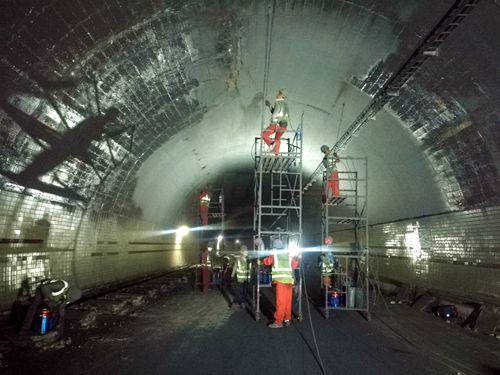 圖為隧道施工現(xiàn)場 目前,大溪嶺機電改造項目中的消防落管已完成總工程量的85%;土建項目中的涂料施工已完成總工程量的 95%、澆筑施工完成總工程量的75%、開槽裂縫完成總工程量的98%;機電項目中的新裝橋架支架完成了75%,照明燈具安裝完成了25%,拆除工作已經(jīng)基本完成。預(yù)計下階段將完成各項機電設(shè)備安裝工作及各種線纜的鋪設(shè)等工作。 馮曉潔
