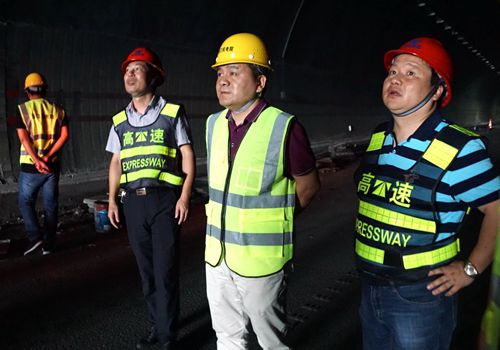 8月8日下午,省公路局高速辦副主任李飛泉、省高速辦養(yǎng)護監(jiān)管科科長侯訓(xùn)田在集團總工程師江輝及市公路局領(lǐng)導(dǎo)的陪同下,赴大溪嶺-湖霧嶺隧道機電改建施工現(xiàn)場指導(dǎo)工作,查看施工進展情況。