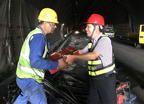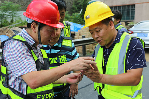8月20日,已經(jīng)是三伏天的尾聲了,雖然經(jīng)過連續(xù)多個(gè)臺風(fēng)的洗禮,然而天氣依然炎熱。集團(tuán)總工程師江輝心系一線,在工程部負(fù)責(zé)人的陪同下,深入大溪嶺-湖霧嶺隧道機(jī)電改造項(xiàng)目工地現(xiàn)場,慰問正在高溫中奮戰(zhàn)的一線施工人員。