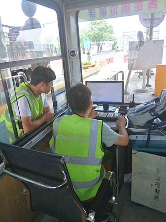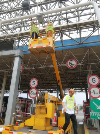 圖為工作人員對天線聯(lián)調(diào)測試 8日9日中午1點30左右,正是一天中最熱的時間,天線廠家?guī)еO(shè)備來到收費所,中心人員便放棄午休時間和早已在外廣場待命登高車駕駛員一起,協(xié)助廠家技術(shù)人員更換離地面6米余高的RSU天線盒。由于天線盒上方?jīng)]有安裝任何遮擋設(shè)備,長年日曬雨淋導(dǎo)致上方固定螺栓都出現(xiàn)生銹打滑,拆卸難度徒增,不到十分鐘,我們工作人員便濕透了全身,但大家還是咬咬牙,為盡快恢復(fù)車道正常行駛,保證車道便捷暢通而繼續(xù)埋頭苦干。在經(jīng)過近一個小時努力,終于將新的天線盒成功安裝,最后經(jīng)過聯(lián)調(diào)測試,恢復(fù)了車輛正常讀卡。 通過對新天線盒“上任”后數(shù)天觀察,發(fā)現(xiàn)該ETC車道讀卡失敗率明顯下降,車輛通過率達到了99.7%。如此一來,大大提高了車輛通行效率,距打造“智慧高速”目標(biāo)又邁進了一步。