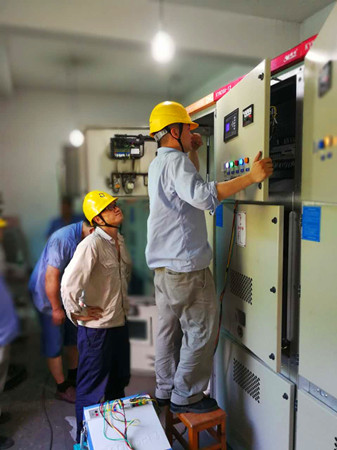 黃土嶺隧道南北配電房高壓系統(tǒng)于1998年建所時安裝,至今已使用近20年,部分設(shè)備過時老化且功能無法升級,經(jīng)過多次維修,已經(jīng)嚴重影響到正常安全運行。為了節(jié)約支出,保證施工質(zhì)量和安全,公司經(jīng)與省計電院聯(lián)系后,決定招標對南配配電房10KV高壓配電系統(tǒng)進行升級改造,新增6組配電柜,安裝高壓切換開關(guān)等設(shè)備。 8月13日下午,維養(yǎng)中心主任助理葉俊帶領(lǐng)三名隊員來到黃土嶺隧道南配配電室后門,拆除其外面的護欄,為第二天配電柜等設(shè)備順利進場做好了提前準備。 14日上午,寧向隧道實施了二類封道,維養(yǎng)中心、黃土嶺隧道所與廠家(浙江耀明電力設(shè)備有限公司)施工人員一起,在起重吊機、叉車等機械配合拖纜下,合力將6組重達數(shù)噸配電柜等設(shè)備搬運至配電房內(nèi)并恢復(fù)了前一天拆除的護攔,等待第二天技術(shù)人員的停電安裝。同時,為了第二天盡早開工,中心和黃土嶺提前落實了油料和參與人員,并預(yù)訂了盒飯,力爭一天時間完成所有安裝工作。 15日一早,廠家和電力公司技術(shù)人員帶著相應(yīng)設(shè)備和工具,先切斷南北配電房主電纜,改為發(fā)電機供電,同時為了做到有備無患,中心還請清障施救人員幫忙將移動發(fā)電機拉至隧道外廣場備用,以保證隧道正常照明及運營。配電房內(nèi),20多名技術(shù)人員被分成了組裝組、接線組以及安裝組,大家各司其職、各盡其責,現(xiàn)場一派忙碌的景象。為不影響隧道內(nèi)正常用電,配電房配置的空調(diào)成了擺設(shè),在這悶熱的房間里,大家僅靠一臺電扇一干就是六七個小時,身上的衣服濕了干,干了又濕,但大家毫無怨言,渴了就喝口水,累了就坐地上休息幾分鐘后又立馬投入到緊張工作中。最終,在15點50左右,所有安裝設(shè)備經(jīng)過聯(lián)調(diào)測試一次通過,隧道又恢復(fù)了正常市電供電。 此次南配高壓配電系統(tǒng)項目成功改造,不僅提高了隧道用電安全、配電運行能效水平,而且還減少電網(wǎng)系統(tǒng)供電損耗,節(jié)省了公司運營成本。