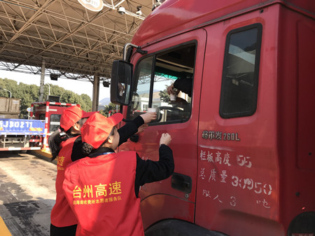 1月12日上午,臨海南收費(fèi)所的收費(fèi)員們走出崗?fù)?,開展了一場“寒冬送溫暖”活動。