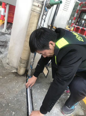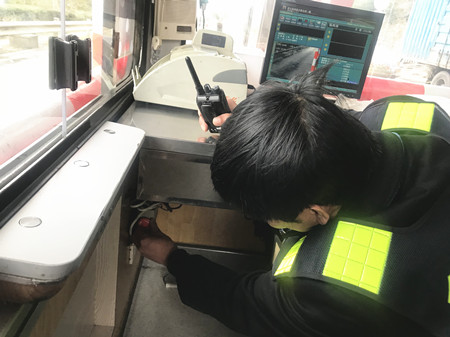 圖為工作人員自查崗亭報警器 此外,工作人員對收費區(qū)域內(nèi)的消防、交通、崗亭設(shè)施設(shè)備,以及票證、通行費等安全情況進行了一次自查,確保安全用電,做好消防和防盜措施,并對當班收費員進行現(xiàn)場稽查,檢查大家在當班期間的崗亭環(huán)境是否衛(wèi)生,臺面是否整齊,著裝是否統(tǒng)一,有無佩戴上崗證,儀表舉止是否規(guī)范,文明用語是否親切,以及抽屜大額現(xiàn)金有沒按規(guī)定放入保險箱等。大家的合力檢查和相互配合,為春運安全暢通、防寒防凍工作提供了強有力的保障。 陳瑩