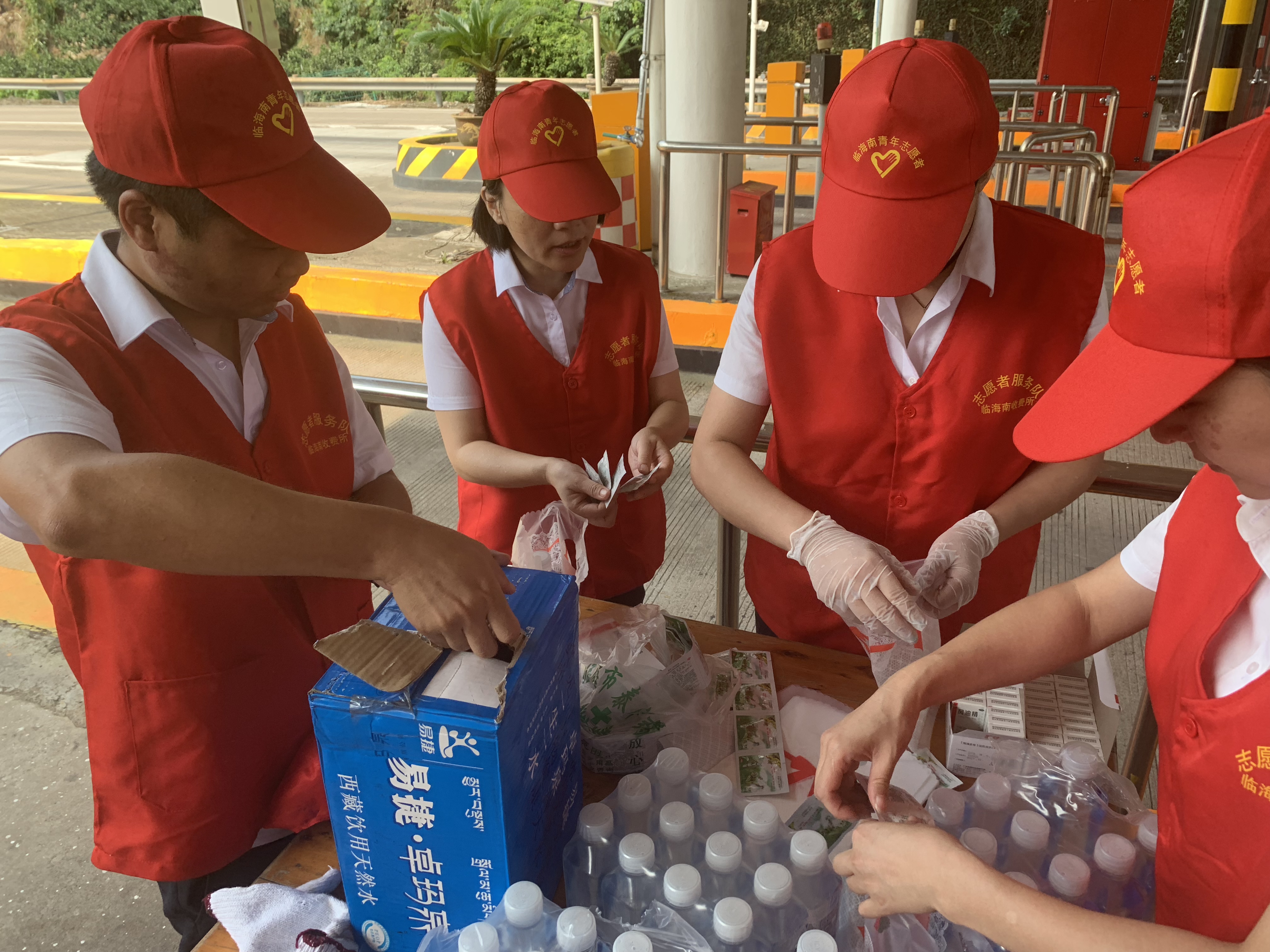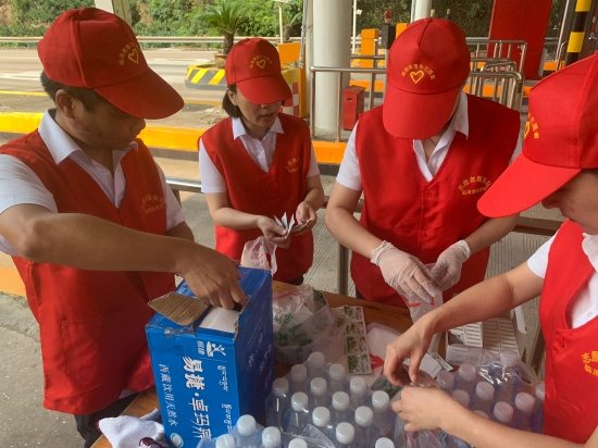 圖為志愿者在準(zhǔn)備防暑物品 “師傅,辛苦啦!這袋子里有礦泉水、風(fēng)油精、人丹一些防暑物品,您拿好,路上帶著以備不時(shí)之需!” “沒(méi)想到,你們收費(fèi)站還有這個(gè)服務(wù),這次我要出趟遠(yuǎn)門(mén),說(shuō)不定路上還真能用的上,謝謝呀!”一位接過(guò)禮品袋的老師傅連聲道謝。