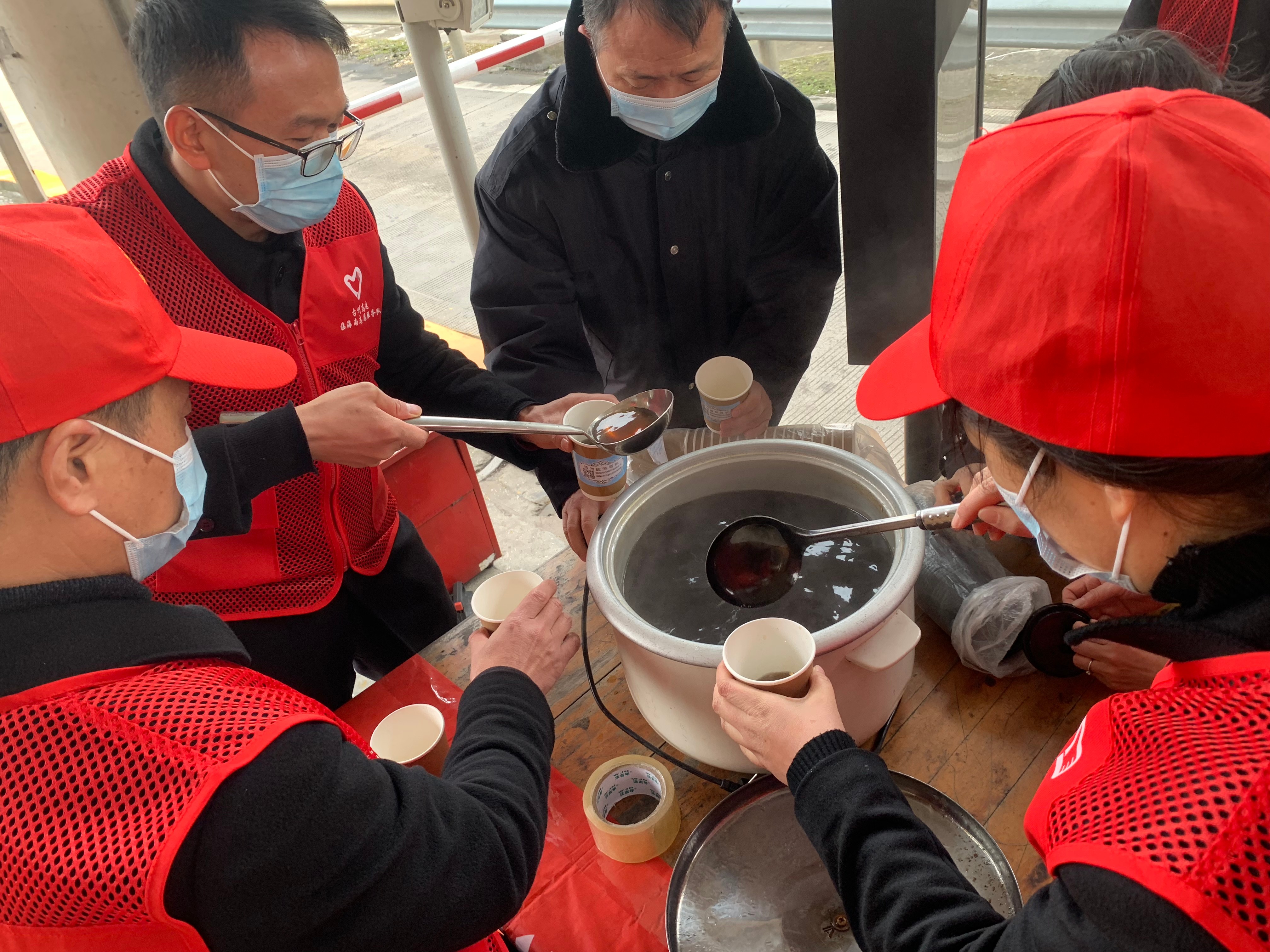 為了開展好本次活動(dòng),收費(fèi)所黨支部提前一天就進(jìn)行了布置,力求在做好疫情防控的同時(shí)開展好志愿服務(wù)活動(dòng)。 當(dāng)天上午,收費(fèi)所食堂預(yù)先熬制好滿滿一大鍋紅棗姜茶,伴隨著鵝毛大雪,車道寒風(fēng)凜冽,但刺骨的寒風(fēng)擋不住志愿者們的似火熱情,大家身穿紅馬甲,面帶口罩,在搭好志愿服務(wù)臺(tái)后,有的負(fù)責(zé)用勺子把滾燙的茶水裝進(jìn)紙杯,有的負(fù)責(zé)蓋杯蓋,有的負(fù)責(zé)傳遞,有的負(fù)責(zé)把裝好茶水的杯子送給駕駛員,現(xiàn)場(chǎng)有序分工。熱情的服務(wù)贏得過(guò)往司乘人員的好評(píng)。
