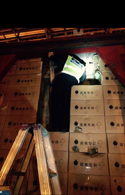 一張照片牽出一輛假冒“綠農(nóng)車” 3月1日凌晨,車號(hào)為滬DL1247的廂式大貨車因假冒綠農(nóng)車在臺(tái)州收費(fèi)所被設(shè)卡攔截,司機(jī)因涉嫌詐騙被公安機(jī)關(guān)帶走調(diào)查。 這輛從溫州南入口、車門上印著“蔬果特快”軸限40噸的115型大貨車,在凌晨2:25分駛?cè)肱_(tái)州收費(fèi)所,司機(jī)自稱運(yùn)送蘋果。當(dāng)檢查人員打開(kāi)車廂后門,搬開(kāi)疊放著兩層的蘋果箱后,發(fā)現(xiàn)廂體另有天地,一個(gè)用鐵條焊成的架子沿著廂壁固定在廂體內(nèi)部,架子上豎著兩大片木板,木板遮擋了廂體六分之五的面積,透過(guò)木板縫隙能看到里面一箱箱的貨物。檢查人員把手伸進(jìn)包裝箱里,拆開(kāi)一看,里面全是電動(dòng)車的配件。