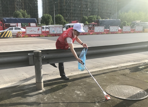 圖為志愿者開(kāi)展“垃圾不落地”活動(dòng)