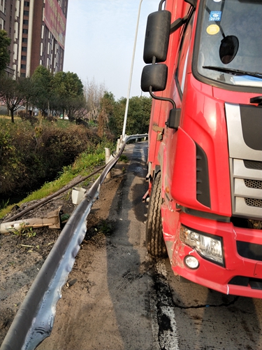 圖為貨車(chē)撞向護(hù)欄后的場(chǎng)景 據(jù)了解,該車(chē)從臨海北上高速,車(chē)內(nèi)只有一名司機(jī),在錯(cuò)過(guò)服務(wù)區(qū)時(shí)頗感疲乏,想著路途不是很遠(yuǎn),堅(jiān)持會(huì)就到臺(tái)州出口了,卻在下高速時(shí)放松了精神,一下就撞到了路邊的護(hù)欄上。7號(hào)車(chē)道是該所最側(cè)邊車(chē)道,幸虧當(dāng)時(shí)車(chē)速較慢,撞在護(hù)欄后停了下來(lái),否則后果不堪設(shè)想。司機(jī)在交費(fèi)后還對(duì)受撞損的護(hù)欄進(jìn)行了賠償。 在此,筆者提醒廣大司機(jī)朋友們,天氣漸暖,不管在何時(shí)何地開(kāi)車(chē),一定要避免疲勞駕駛,集中精力仔細(xì)觀(guān)察道路情況,確保行車(chē)安全。 馬德偵