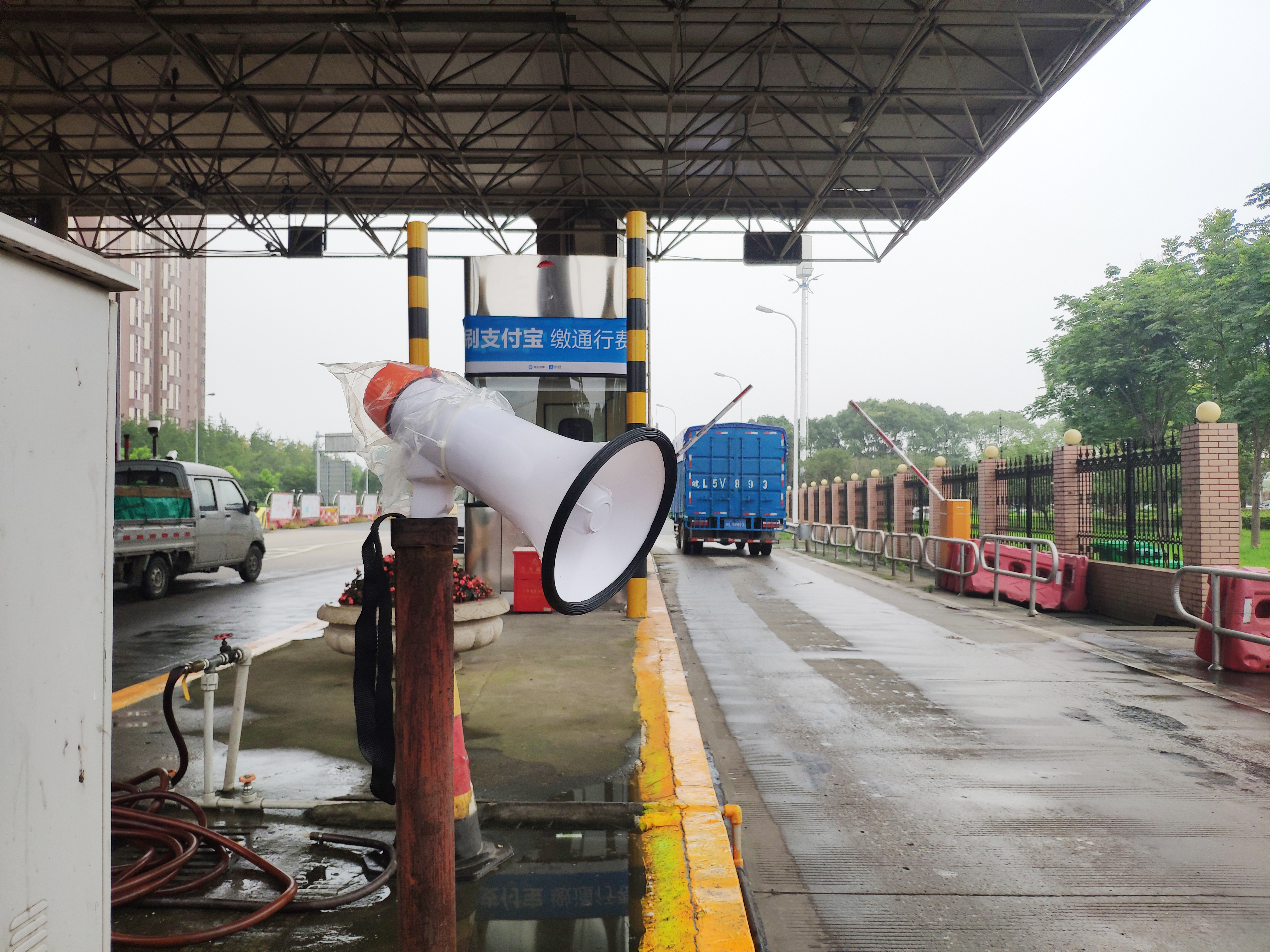 圖為入口處放置的語音警報小喇叭 在嚴把入口關中,該所要求入口必須有人員在崗,履行“一崗雙職”的重任,時刻關注入口情況,及時發(fā)現(xiàn)并勸阻違規(guī)車輛和人員的進入。此外,入口顯眼處懸掛“請珍愛生命,禁止行人和非機動車上高速”的警示標語。入口處增添放置的管控小助手---語音警報器,循環(huán)播放普通話和方言警示標語:“行人、自行車、摩托車禁止上高速公路”。入口安全島頭和邊溝處放置水碼,防止行人、摩托車、電動車和自行車從邊溝處和超寬車道進入高速。而由維養(yǎng)中心人員在入口高處安裝的攝像裝置,只要行人、自行車等非機動車輛出現(xiàn)在攝像范圍內(nèi),就會立刻傳來“警戒區(qū)域,請盡快離開”的持續(xù)性警報聲。在人員的管控和設備的警示下,收費所入口安全不斷地提升。