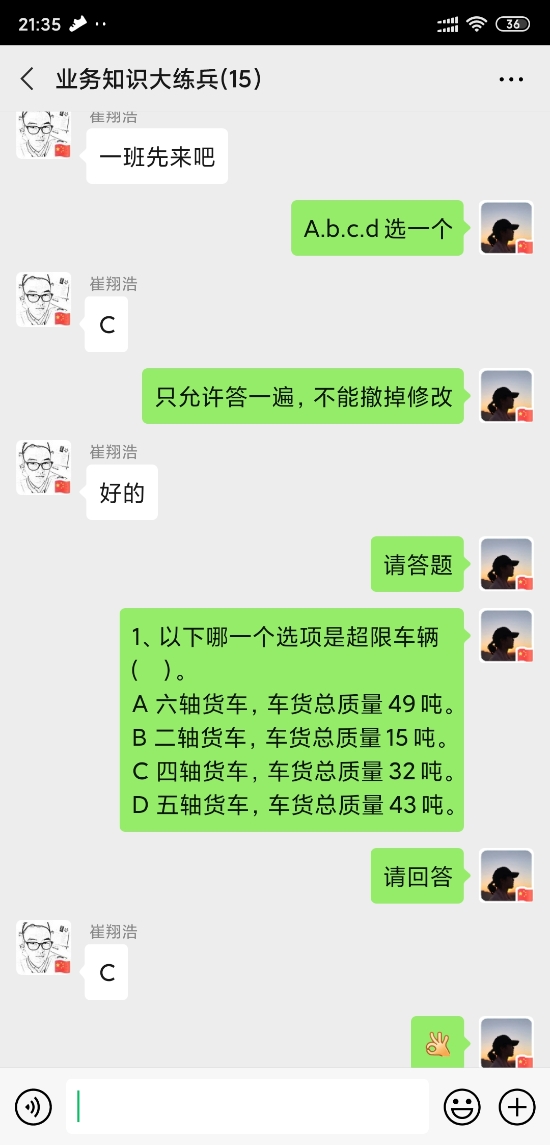 圖為比賽答題現(xiàn)場 復(fù)賽開始前,參加人員由所務(wù)人員組建了群,雖然是以網(wǎng)絡(luò)方式比賽,但比賽熱情高漲,你追我趕,分?jǐn)?shù)不相上下,其中第一小組以突出表現(xiàn)最終奪冠。收費一班崔翔浩、何丹燕,收費三班任青青分別獲得個人第一、二、三名。 這種“比一比,練一練”的形式,營造了良好的學(xué)習(xí)氛圍,它有助于更全面地提升員工業(yè)務(wù)水平和綜合素質(zhì),更進(jìn)一步激發(fā)全體員工深入學(xué)習(xí)新業(yè)務(wù)新知識的熱情。 楊雅芬