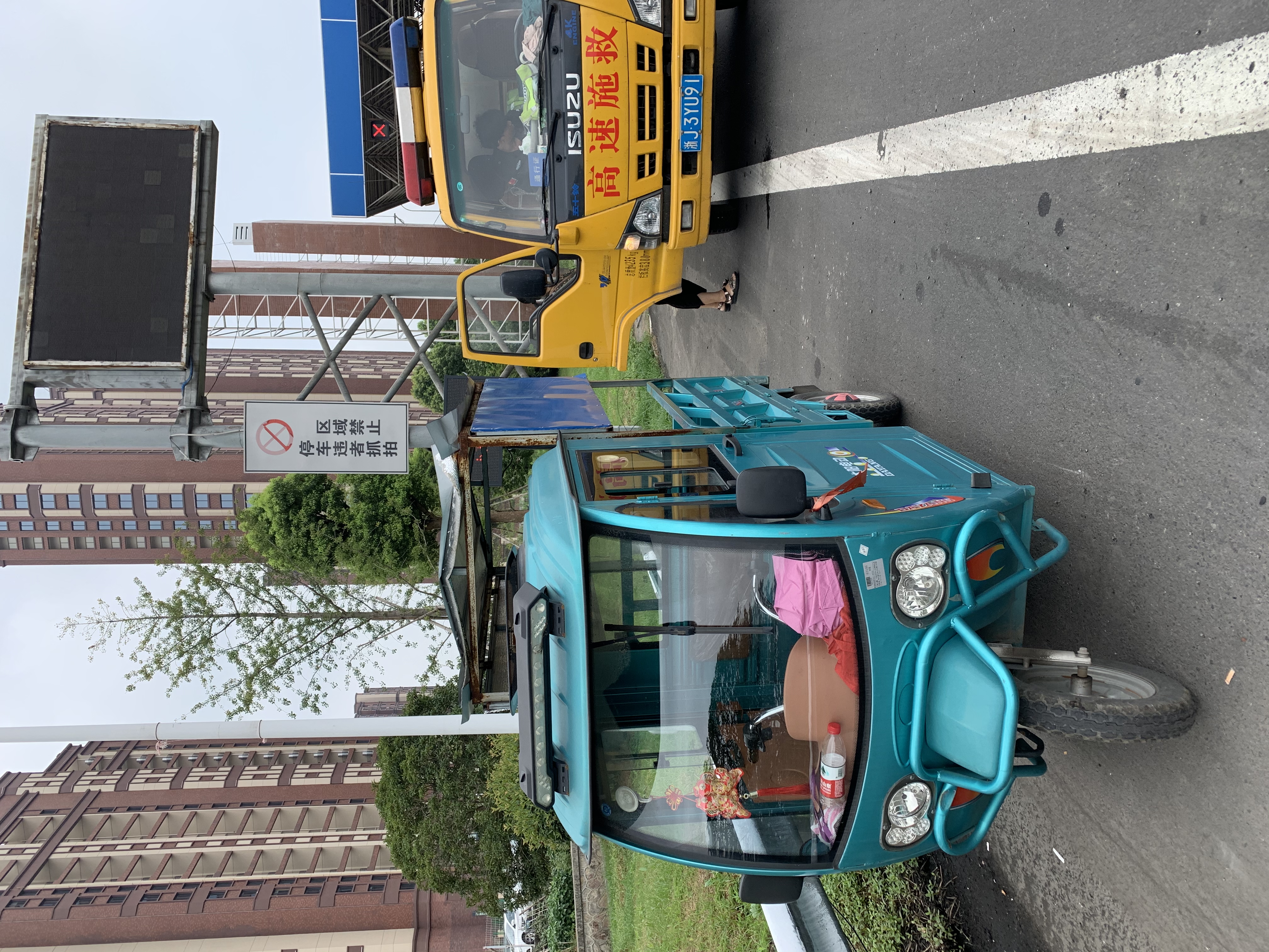 三輪車誤入高速 危險(xiǎn)?。?! 7月26日上午,一輛電動(dòng)三輪車緊跟在大貨車后面開進(jìn)臺(tái)州收費(fèi)所入口車道,被發(fā)現(xiàn)后不顧收費(fèi)員勸阻,撞開欄桿,直奔寧向入口匝道。 10點(diǎn)18分,收費(fèi)員發(fā)現(xiàn)此電動(dòng)三輪車緊隨大貨車試圖進(jìn)入高速,立即勸阻,但三輪車主不聽勸,收費(fèi)員準(zhǔn)備出崗?fù)穹禃r(shí),她直接撞開欄桿向前行駛,收費(fèi)員立即用對(duì)講機(jī)匯報(bào)了情況。此時(shí)正在出口處理特情的班長(zhǎng)聽到后,快速往匝道口追去,邊追邊喊,并通知監(jiān)控中心,然而三輪車加速前行。10點(diǎn)30分左右,交警在主線找到這輛三輪車并攔截住,10點(diǎn)50左右在高速救援車(輪胎車)的護(hù)送下,安全出高速。