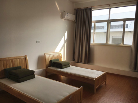 圖為員工寢室內(nèi)景 此次改造,將原先連接食堂和副站生活區(qū)域的鋼棚拆除,新砌成儲(chǔ)物間,并對(duì)食堂的布局也進(jìn)行了重新調(diào)整,將洗碗槽由室內(nèi)移到室外,增加用餐場(chǎng)所的面積,改造后的食堂可容納30多人同時(shí)用餐。新食堂內(nèi)還更換了老舊的碗柜、桌、椅等用具,碗柜統(tǒng)一采用消毒柜。廚房內(nèi)部被劃分成切配、烹飪、清洗等功能區(qū),下水道蓋一致?lián)Q成不銹鋼的,倉庫、空調(diào)、消毒碗柜等區(qū)域及電源插座等都作了加高處理,避免每年汛期時(shí)進(jìn)水使食物受潮霉變,消除插座因進(jìn)水而漏電的安全隱患。 這次施工不但對(duì)食堂進(jìn)行了改造,而且利用框架在食堂上方再建了一層,增加了五間員工寢室和一間活動(dòng)室,不僅緩解了住宿擁擠的難題,也讓住所里的員工有娛可樂。 “希望就餐和住宿環(huán)境改善后,我們的員工吃住舒心,安心上班?!彼L王益民說。 夏蓮萍