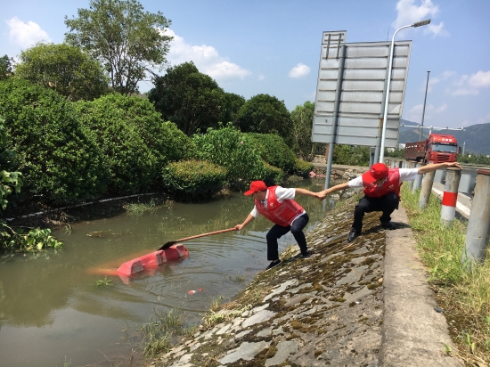 圖為志愿服務(wù)現(xiàn)場(chǎng) 隔離護(hù)欄被風(fēng)吹歪的,將其扶正,并作簡(jiǎn)單的固定;綠化帶好多樹被連根拔起,找來?yè)螚U、繩子進(jìn)行加固;斷枝殘葉滿地都是,就用手撿,用掃把掃,集中堆放倒伏的斷枝;清掃路上的垃圾;清除路障;打撈被風(fēng)吹入邊溝的水馬;對(duì)收費(fèi)區(qū)域的衛(wèi)生來了一次大清理…… 臺(tái)風(fēng)后氣溫升高,空氣濕度大,天氣異常悶熱,志愿者們揮汗如雨,一個(gè)個(gè)臉被曬得通紅,他們卻沒有因此放下手中的工具,停滯清理的步伐,迎“熱”而上,為災(zāi)后的恢復(fù)貢獻(xiàn)自己的力量,用行動(dòng)踐行初心和使命。 夏蓮萍