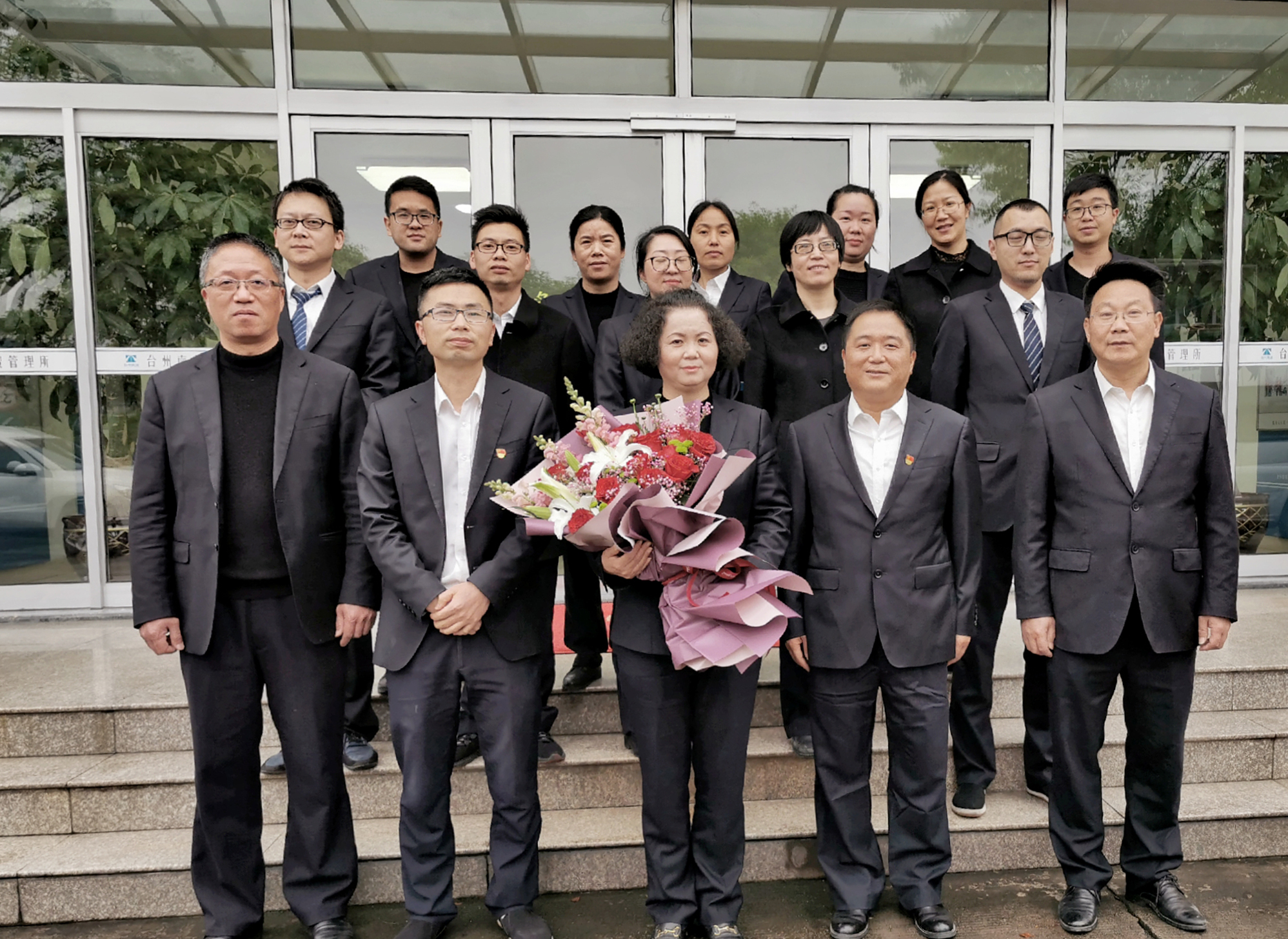 所長王益民為退休員工頒發(fā)光榮退休證書并送上鮮花,大家一起來到收費(fèi)所大樓前合影留念,將這美好的瞬間記錄下來。