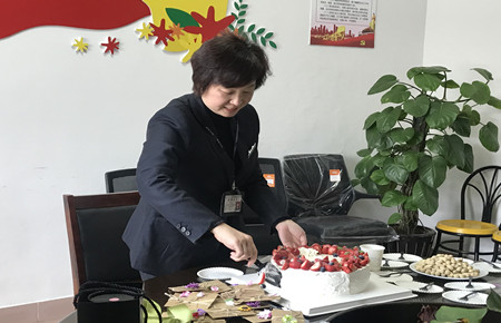 圖為陶秀英同志在歡送會現(xiàn)場切蛋糕 歡送會上,章海峰代表臺州高速,對陶秀英同志二十余年如一日為集團(tuán)發(fā)展所付出的辛勞和貢獻(xiàn)表示了衷心感謝,預(yù)祝她退休生活豐富多彩,也希望她退而不休,?;?/span>“家”看看。同時號召年輕員工學(xué)習(xí)陶秀英身上傳承勤勤懇懇、認(rèn)真踏實的態(tài)度與精神,為征費(fèi)管理共努力,為集團(tuán)發(fā)展共拼搏。