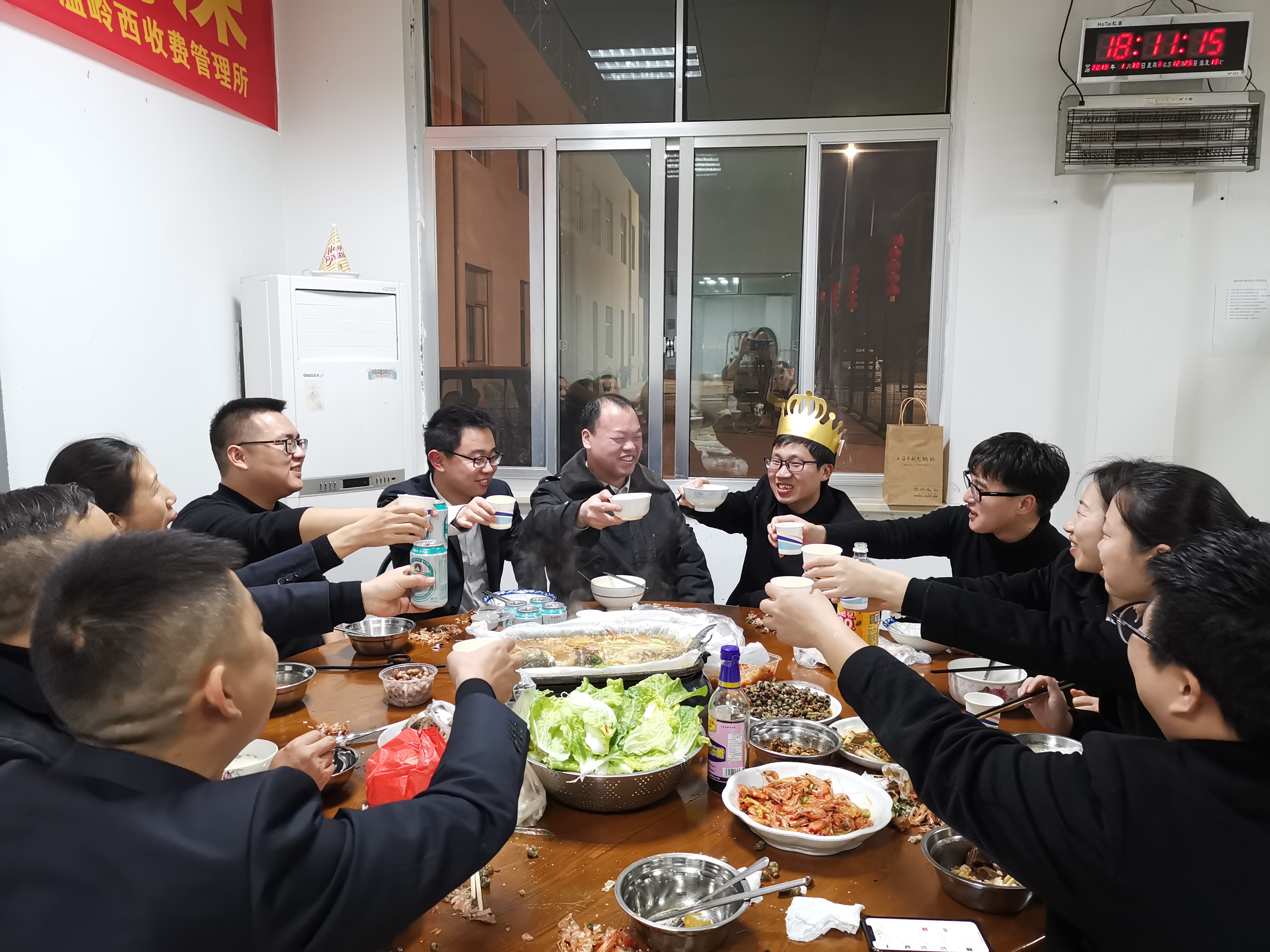 生日快樂——我們是相親相愛的一家人 “祝你生日快樂,祝你生日快樂……” 1月30日傍晚,溫嶺西收費(fèi)所二班成員齊聚 在單位食堂,為小壽星洪燈杰舉辦了一場簡單而又有意義的生日宴會。