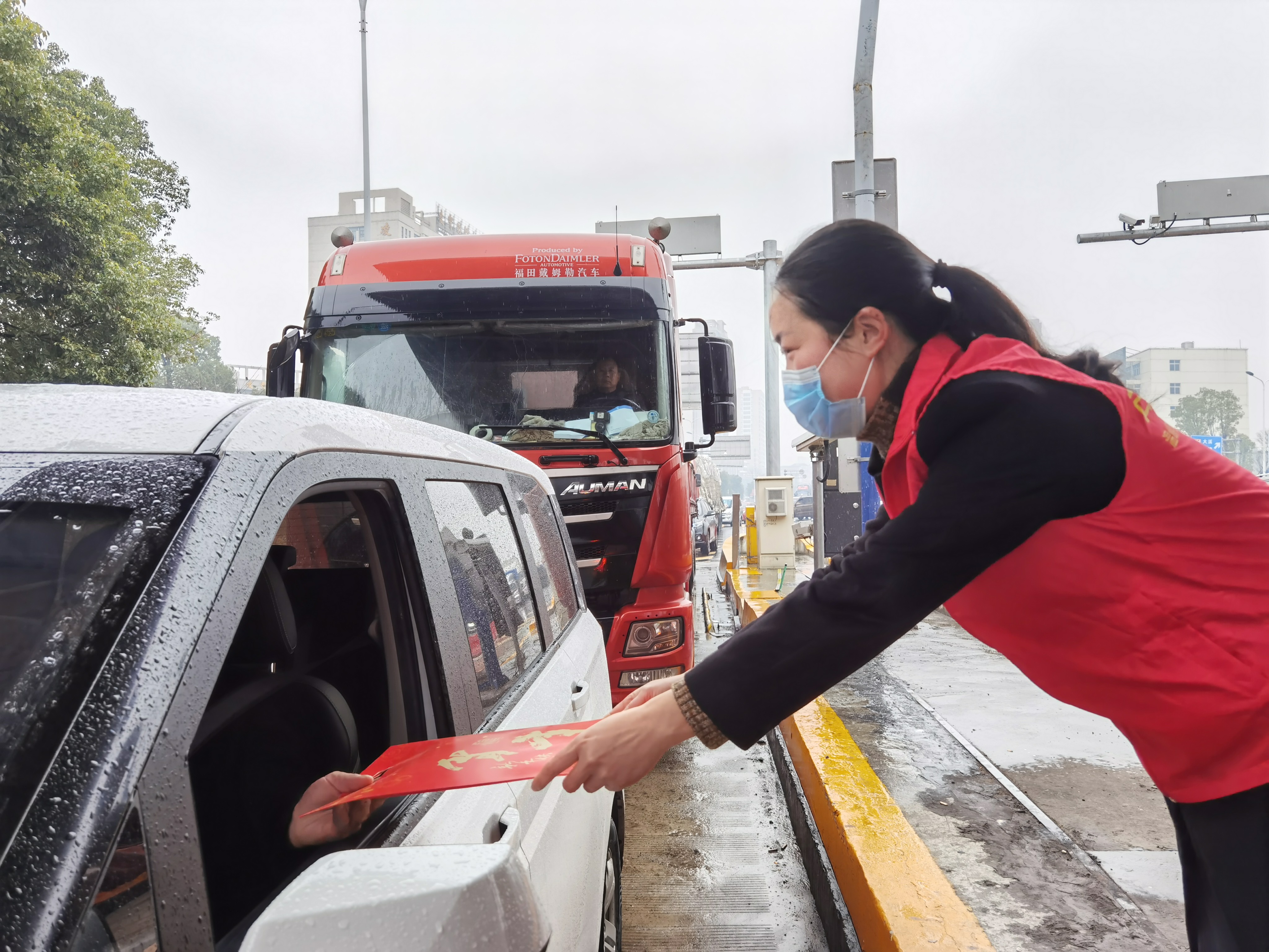 “師傅,新年快樂!”一句句響亮的新春祝福在溫嶺西收費站上空回繞。 在春節(jié)來臨之際,為更好地傳承我國新春佳節(jié)的習(xí)俗,讓廣大司乘人員感受到喜慶溫馨的節(jié)日氣氛,1月21日上午,溫嶺西收費所志愿者們開展“迎新春、送春聯(lián)、送祝?!被顒樱盏酱郝?lián)的司乘朋友們,臉上洋溢著幸福的微笑。