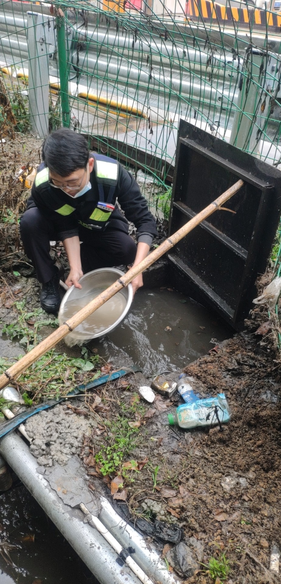 找出原因后,鄭星趕忙跑到所里取來一個水盆和一根木桿子。他用木桿支起排水坑上的蓋板,將坑里的積水一盆一盆地舀到旁邊的排水溝里。引導完車輛的林華平也過來協(xié)助鄭星。雖然此時外面下著雨,但他們全然沒顧上,只盼著舀水這個措施能夠有效,11號車道能夠早點恢復使用,進口秩序能夠早點恢復正常。 最后在鄭星和林華平的冒雨搶修下,排水坑里的水位總算有所下降,11號車道在關閉二十多分鐘后終于恢復使用,進口車輛也恢復暢通。 因地磅傳感器長期被雨水浸泡,可能還存在一些潛在問題。再者,排水坑里的水位雖有所下降,單憑人力實在無法在短時間內排掉剩余積水??紤]到這些問題,班長在搶修過后又將情況匯報給了維養(yǎng)中心,維修人員后序針對地磅問題進一步展開排查和維修工作。 趙育辰