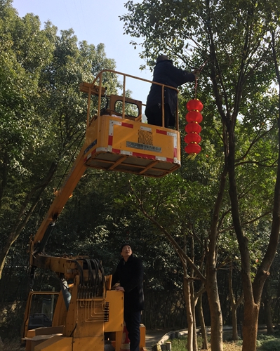 圖為黃土嶺隧道所員工合影 “往左往左,站臺(tái)再下降一點(diǎn)。”金先華麻利地操作著登高車,“爬樹(shù)高手”金美忠自然地肩負(fù)起了懸掛燈籠的任務(wù),而個(gè)子高高的廖科則負(fù)責(zé)遞燈籠,其它人員有的負(fù)責(zé)將燈籠系好鐵絲,有的負(fù)責(zé)扛梯子,有的則不時(shí)地在遠(yuǎn)點(diǎn)兒的位置仔細(xì)看燈籠掛得正不正, 兩個(gè)燈籠高度是否一致,對(duì)聯(lián)是否對(duì)齊等等。大家有說(shuō)有笑,忙得不亦樂(lè)乎! 不一會(huì)兒工夫,喜慶的春聯(lián)貼起來(lái),紅紅的燈籠串掛起,管理所員工在一片喜氣的歡樂(lè)氛圍中共同期待著的新年的到來(lái)! 林 玲