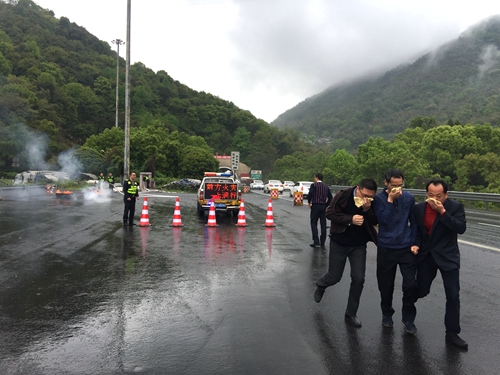 火災(zāi)演練錘煉真功夫,應(yīng)急能力再提升 4月11日天上午,黃土嶺隧道所組織開展“隧道模擬車輛火災(zāi)施救”演練活動(dòng)。公司安保部、收費(fèi)所、施救中心及隧道所相關(guān)人員觀摩此次演練。
