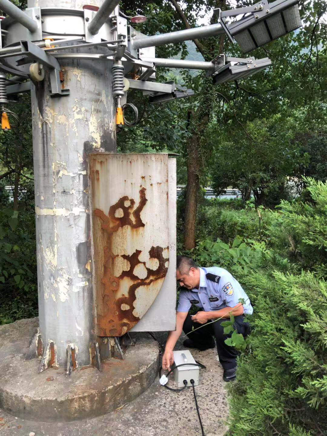 圖為執(zhí)勤隊員查看豎井 8月10日凌晨01:18分,受臺風影響,黃土嶺隧道突然停電,當時正值臺風登陸期,風大雨急,執(zhí)勤隊員二話不說,不顧狂風暴雨立即展開巡查排除故障,后經現(xiàn)場確認是供電部門受臺風影響而停電。執(zhí)勤隊隨即啟動停電應急預案,切換供電線路,啟動柴油發(fā)電機供電,保障了所內及隧道部分正常用電。