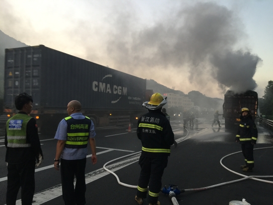 高速貨車起火 多部門應急聯(lián)動除隱患 9月14日17:52,甬臺溫高速黃土嶺隧道出口寧向1638米處,一輛滿載廢舊電器物品的貨車在高速上突然起火。