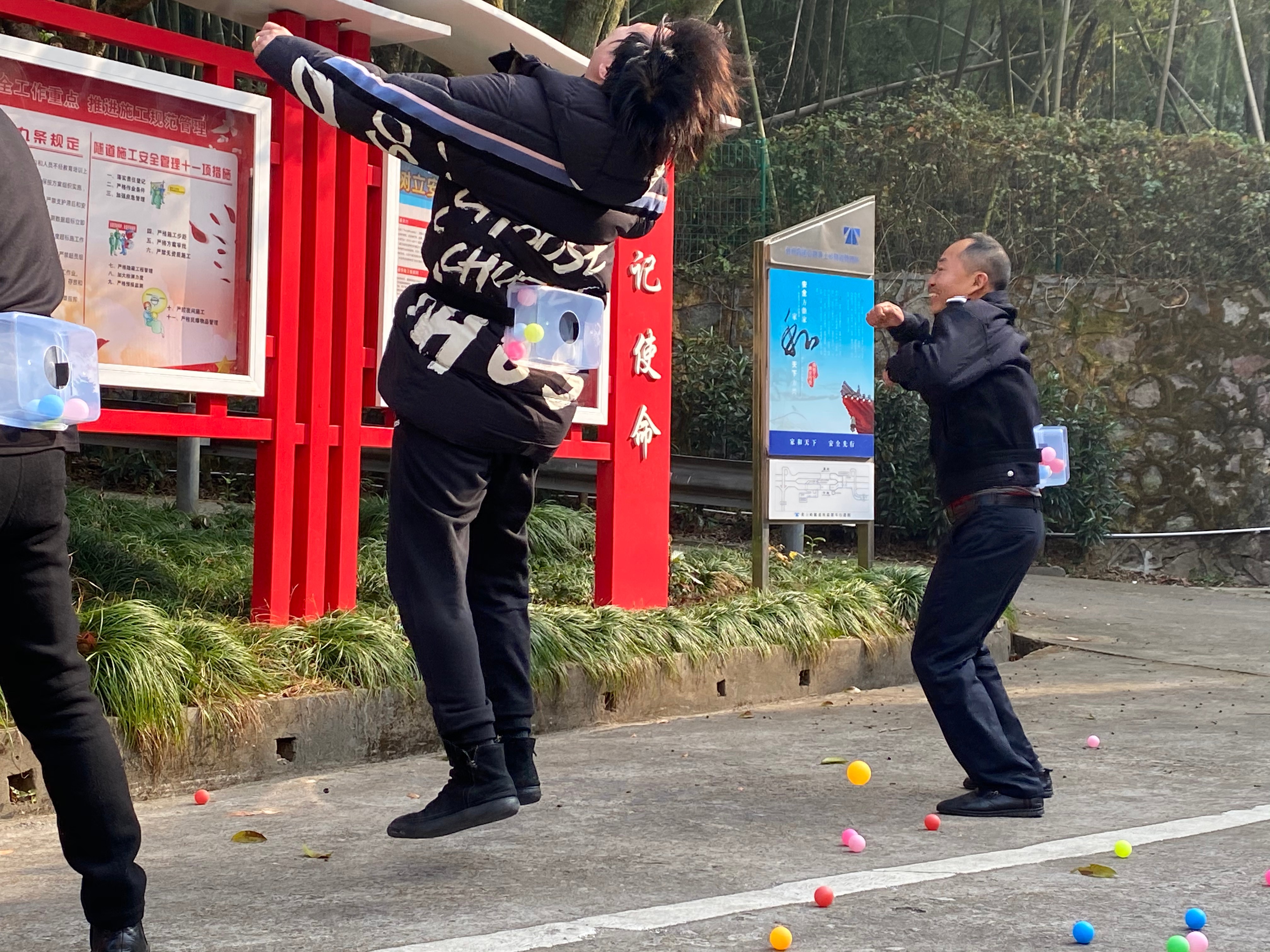 12月29日上午,臺州高速黃土嶺隧道所舉辦了一場別開生面的趣味運(yùn)動會,寬闊的廣場上充滿了歡聲笑語,吶喊聲、加油聲此起彼伏,隧道所領(lǐng)導(dǎo)與全體員工積極參與、共同合作。 本次“運(yùn)動會”分個人與團(tuán)體兩種形式,個體項(xiàng)目有投籃、飛鏢、電臂達(dá)人等,團(tuán)體賽項(xiàng)目分別是無敵風(fēng)火輪和摸石過河。 “預(yù)備,開始!”隨著裁判員一聲令下,摸石過河比賽開始了,選手們迅速進(jìn)入狀態(tài),彎腰、拿磚、邁腳,隊(duì)員竭盡全力地將腳下的磚塊不停地移動。兩只腳踩在一塊磚上,兩只手把另外兩塊磚不斷地向前移動。“還有5米、2米,堅(jiān)持??!”隊(duì)員們個個腳疼腿軟,但毫不松懈,勇爭第一,最后執(zhí)勤二隊(duì)一舉勝出。