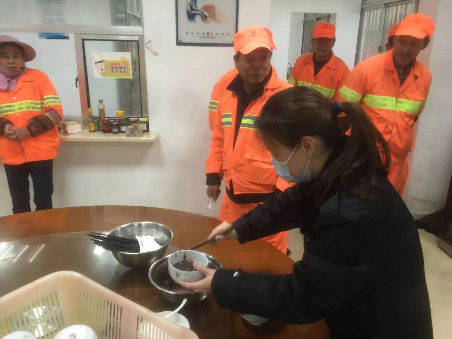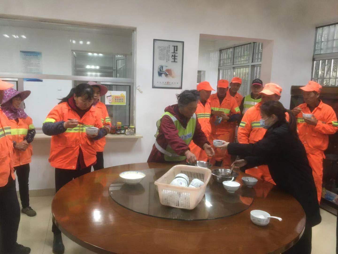 (圖為隧道所邀請養(yǎng)護(hù)人員到所食堂喝粥)