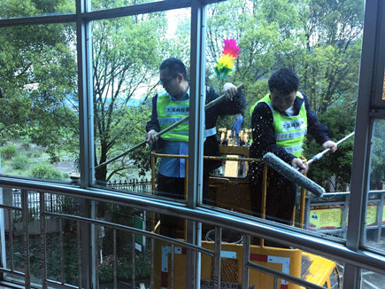 當(dāng)天午飯過后,大家便一齊動(dòng)手,清理衛(wèi)生死角、彈蜘蛛網(wǎng)、擦玻璃、用水沖洗紗窗、掃場(chǎng)地......分工合作,忙得不亦樂乎。