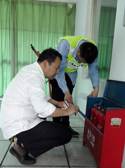 該所副所長(zhǎng)應(yīng)錦清帶領(lǐng)隊(duì)員仔細(xì)檢查了南北配電房的機(jī)電設(shè)施,隨后對(duì)管理房的干粉滅火器、隧道內(nèi)的泡沫滅火器,配電房、中控室的二氧化碳滅火器進(jìn)行逐一檢查,查看每個(gè)滅火器的壓力值、出氣管有無(wú)彎折、堵塞、損傷,壓把和閥體等金屬件有無(wú)變形和銹蝕,是否還在使用年限之內(nèi)等等,并做好相應(yīng)的檢查記錄。