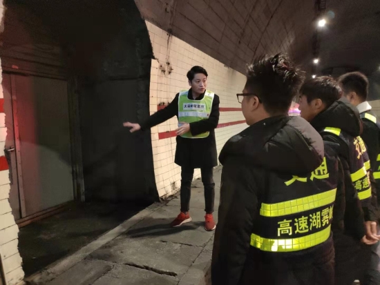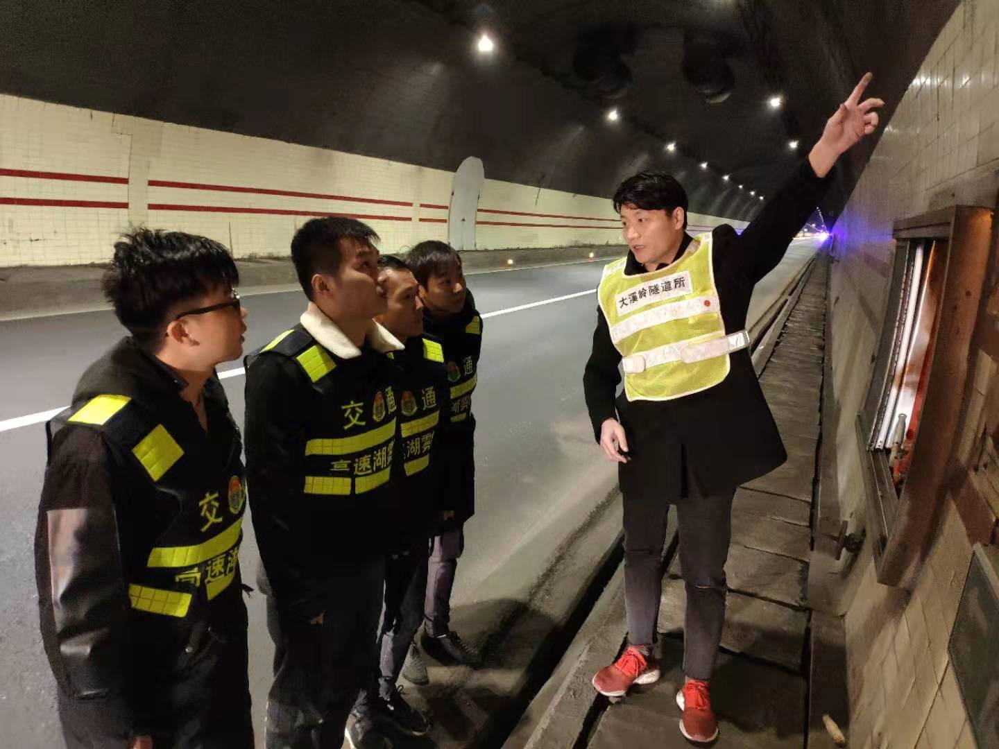 圖為羅鳴春對(duì)樂清市高速公路湖霧嶺隧道開發(fā)有限公司駐隧道南邊執(zhí)勤點(diǎn)的幾位新員工進(jìn)行培訓(xùn) 借此次隧道清洗良機(jī),所長(zhǎng)助理羅鳴春對(duì)樂清市高速公路湖霧嶺隧道開發(fā)有限公司駐隧道南邊執(zhí)勤點(diǎn)的幾位新員工進(jìn)行業(yè)務(wù)培訓(xùn),帶他們進(jìn)入隧道熟悉隧道內(nèi)消防箱、人通、汽通的位置,并告知平時(shí)執(zhí)勤時(shí)的工作任務(wù),詳細(xì)解說了隧道封道、卡口、路面執(zhí)勤、施救的操作流程,希望他們能盡快融入工作,為大溪嶺-湖霧嶺隧道平安暢通貢獻(xiàn)力量。臺(tái)溫雙方將持續(xù)合作,共同管理,共同維護(hù)好這條隧道。 陳智慧