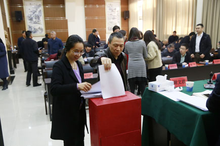 圖為公司董事長謝文君在會(huì)上匯報(bào)2016年度工作