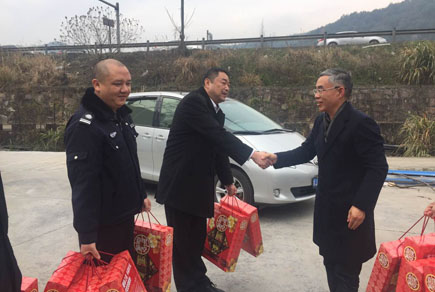 圖為公司董事長謝文君在一線慰問 每到一所,謝文君都向在崗?fù)?nèi)收費(fèi)和監(jiān)控室內(nèi)的員工送上新春祝福,道聲:“辛苦了!”詢問值班安排,了解車流量情況。當(dāng)?shù)弥?dāng)天車流量特別大時(shí),謝文君要求各收費(fèi)所即使是小型客車免費(fèi)時(shí)間,也要合理安排上崗員工休息、吃飯時(shí)間,增強(qiáng)收費(fèi)力量,加強(qiáng)各所間交流,及時(shí)掌握車流量變化,維護(hù)好通行秩序,確保安全暢通。要求各隧道所加強(qiáng)監(jiān)控,時(shí)刻關(guān)注隧道內(nèi)車流變化,及時(shí)提醒過往司機(jī)減速慢行通過隧道,確保過往司乘人員過個祥和平安的春節(jié)。 此外,謝文君還到食堂、宿舍查看員工在節(jié)日期間的飲食和住宿情況。了解在崗員工個個精神飽滿、熱情洋溢,謝文君感到欣慰,鼓勵大家繼續(xù)努力,提供優(yōu)質(zhì)的文明服務(wù),樹好公司形象。