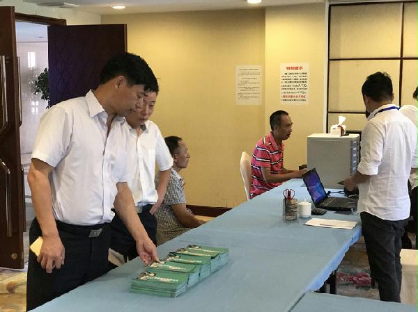 圖為集團(tuán)副總經(jīng)理陳保衛(wèi)正在檢查收購點(diǎn)宣傳資料