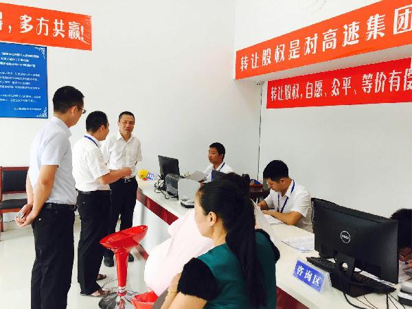 圖為集團(tuán)副董事長(zhǎng)、總經(jīng)理張建平在天臺(tái)收購(gòu)點(diǎn)詳細(xì)詢問(wèn)收購(gòu)工作具體開(kāi)展情況 張建平向各地方政府前期對(duì)公司股權(quán)收購(gòu)工作的支持表示感謝,他介紹了當(dāng)?shù)嘏_(tái)州高速股權(quán)收購(gòu)進(jìn)展情況,同時(shí)闡明收購(gòu)工作中存在的困難,需要地方政府繼續(xù)對(duì)我們的工作給予支持和幫助。三地政府都表示一定會(huì)全力支持這項(xiàng)工作。仙居縣分管公司股權(quán)收購(gòu)的常務(wù)副縣長(zhǎng)說(shuō),“放心吧,我們一起想辦法,先從持股較多的法人股入手,再化大力氣做小股東工作,一定會(huì)圓滿完成任務(wù)。” 張建平一行先后來(lái)到三地股權(quán)收購(gòu)點(diǎn),向收購(gòu)一線的工作人員表示親切的問(wèn)候。張建平對(duì)大家的工作給予肯定,感謝所有人勤勤懇懇,無(wú)私付出,并希望大家繼續(xù)努力,共同實(shí)現(xiàn)目標(biāo)。工作人員詳細(xì)介紹了日常具體工作方法,他們緊跟公司股權(quán)收購(gòu)總體布局,并結(jié)合當(dāng)?shù)靥厥馇闆r,因地制宜,有序靈活地開(kāi)展股權(quán)收購(gòu)工作。