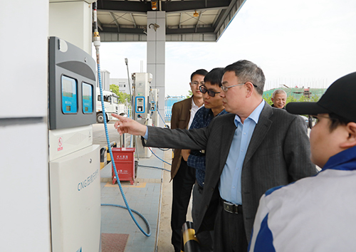 圖為公司領(lǐng)導(dǎo)陳文波在臺(tái)州市浙能油氣發(fā)展有限公司公交綜合站加氣(加油)站調(diào)研