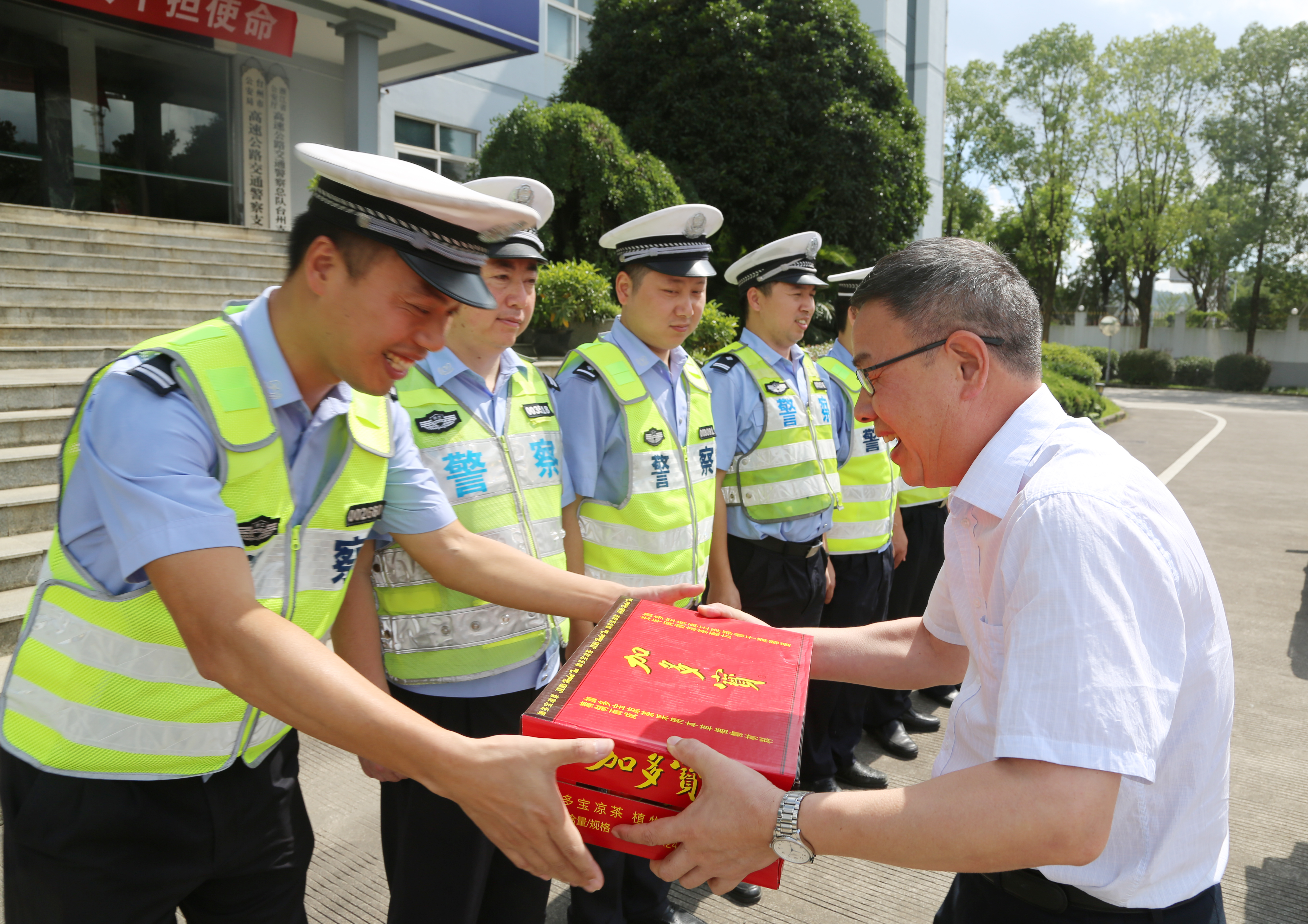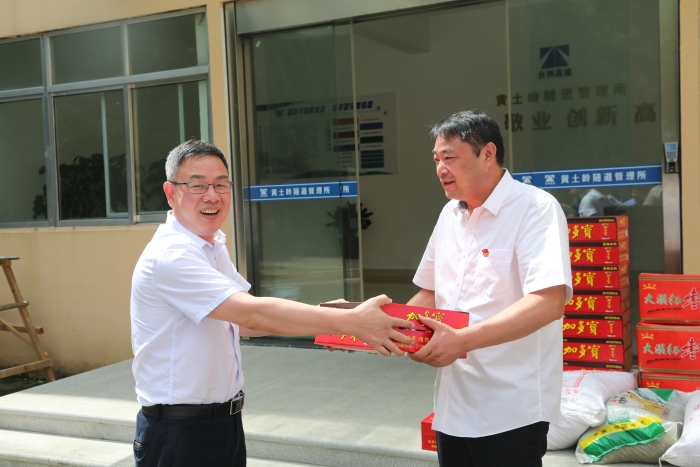 陳文波一行首先來到臺(tái)州高速公路交警總隊(duì)臺(tái)州支隊(duì)和高速路政的駐地,向他們送上了消暑物資,對他們一直以來有力維護(hù)高速公路秩序,保障本路段有序運(yùn)營及高溫下堅(jiān)守一線工作表示慰問和感謝,也請他們繼續(xù)支持公司工作,確保高速公路安全暢通。