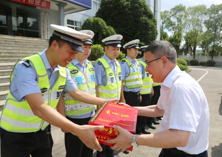 與此同時(shí),集團(tuán)總工程師江輝帶領(lǐng)工程部及收費(fèi)所相關(guān)人員到院橋派出所和交警隊(duì)開展“送清涼”活動(dòng)。江輝代表臺(tái)州高速集團(tuán)對當(dāng)?shù)嘏沙鏊徒痪?duì)的履職盡責(zé)、通力協(xié)作表示衷心感謝,并叮囑他們在高溫天氣要做好防暑降溫工作。