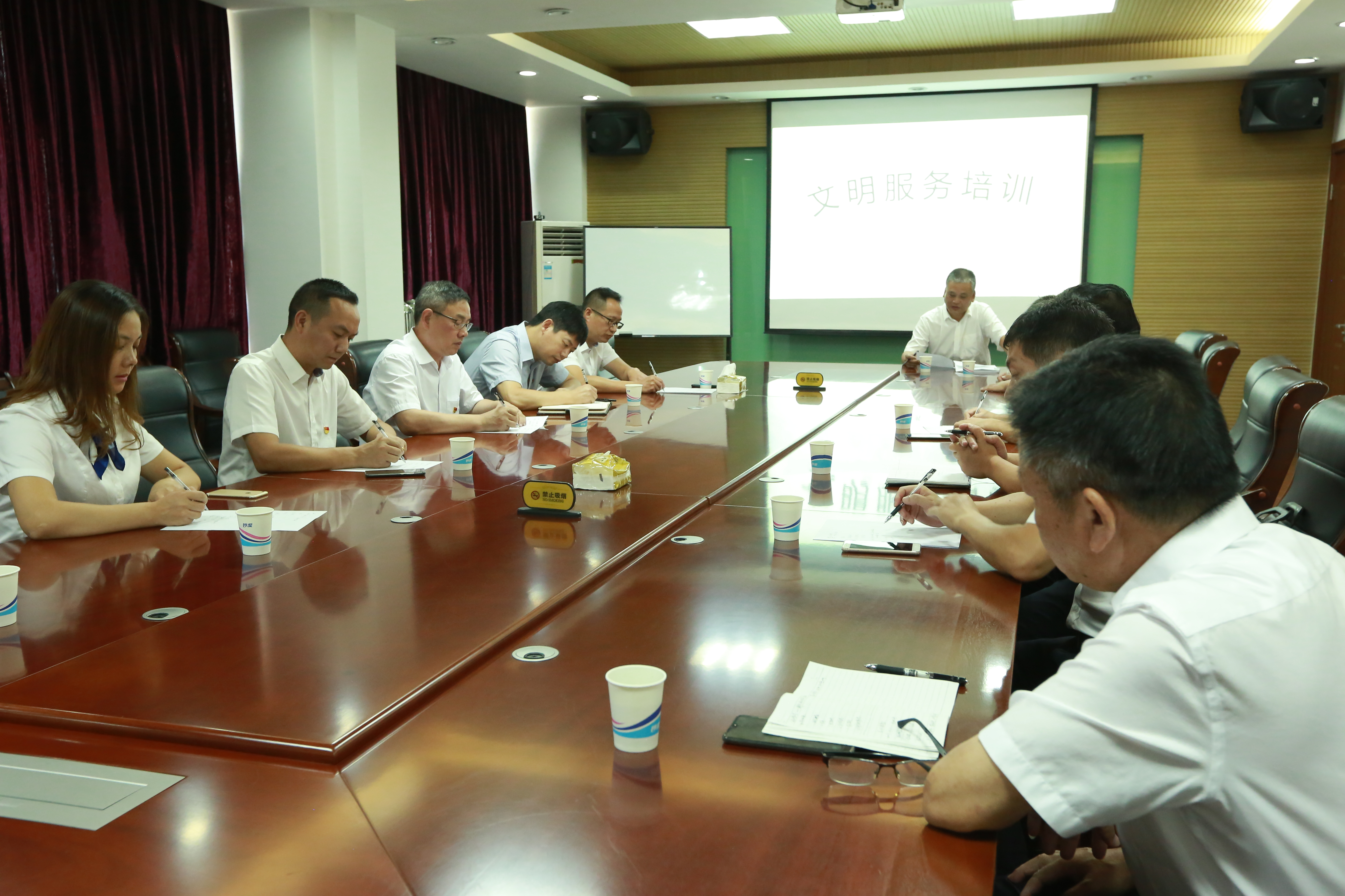 隨后,臨海南收費(fèi)所文明服務(wù)培訓(xùn)師徐蘇蘇通過PPT,以輕松風(fēng)趣的講課風(fēng)格,給班子領(lǐng)導(dǎo)們上了一堂儀容儀表講解、操作流程演示、文明服務(wù)動(dòng)作以及心理建設(shè)的課,并通過員工真人示范文明服務(wù)中坐姿、眼神、聲音等練習(xí),令在場(chǎng)的受訓(xùn)者耳目一新。