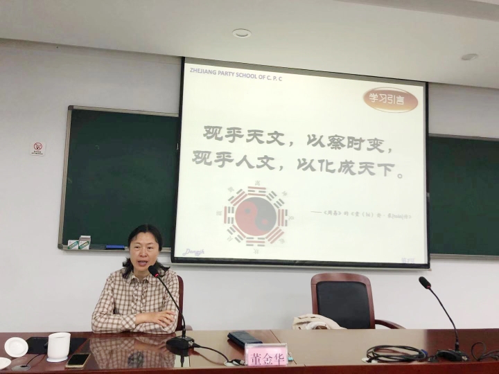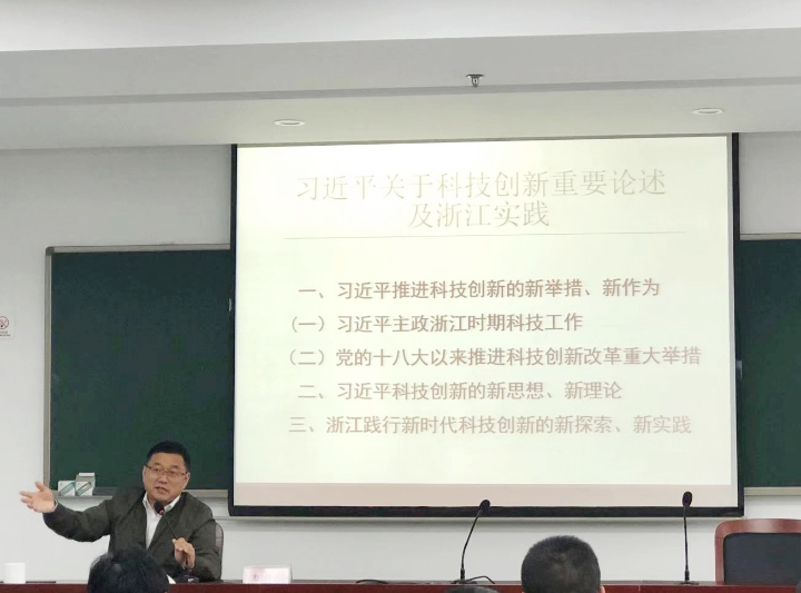 圖為浙江省科技廳教育培訓(xùn)中心副主任戴銀燕以《習(xí)近平科技創(chuàng)新及浙江實踐》為題授課