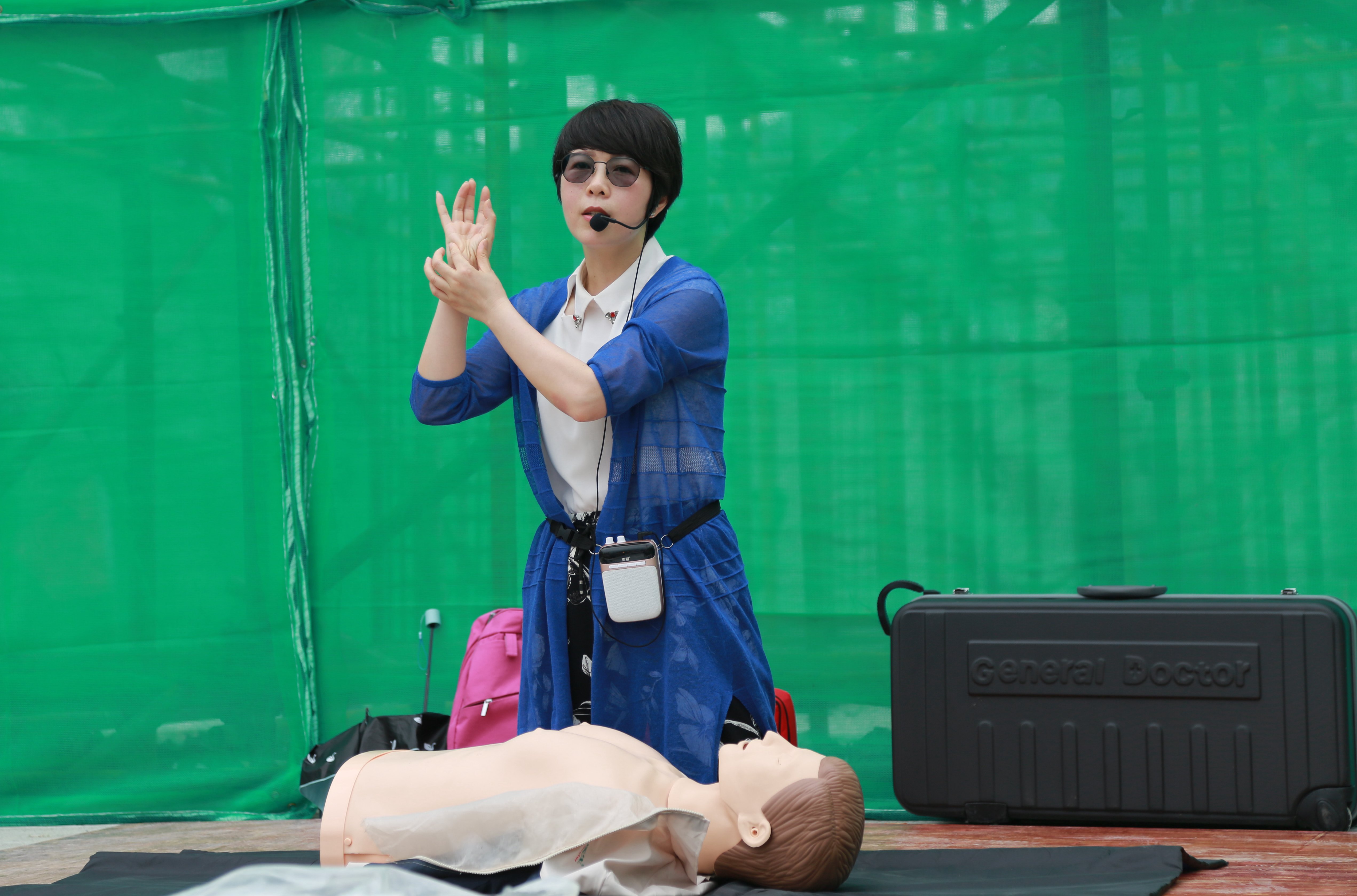 隨后,臺州職業(yè)技術(shù)學(xué)院副教授李美芬到場為大家開展心肺復(fù)蘇急救知識培訓(xùn)。李美芬在現(xiàn)場結(jié)合模型詳細為大家講解心肺復(fù)蘇急救時的注意事項、操作方法、步驟流程等,并作了專業(yè)的示范。現(xiàn)場人員踴躍上臺實踐學(xué)習(xí),李美芬一一在旁邊作技術(shù)指導(dǎo),強化了大家的學(xué)習(xí)效果。