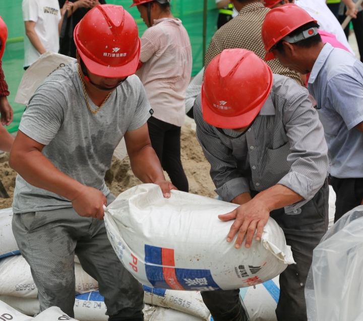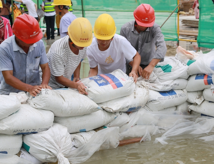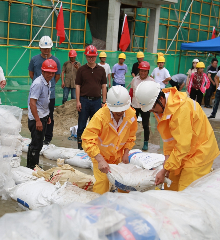 圖為模擬建筑工地面對洪水倒灌的現(xiàn)場應(yīng)急搶險