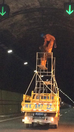 圖為施工人員在隧道內(nèi)拆除中排燈 塘嶺隧道自建成通車到現(xiàn)在已近20年,隧道兩頭中間位置,一排用來加強照明高壓納燈為2011年機電改造工程的遺留物,屬報廢燈具。如今,由于上方用于固定納燈鐵架已出現(xiàn)不同程度腐爛,有些納燈已出現(xiàn)晃動現(xiàn)象,一旦斷落,勢必給高速行車埋下安全隱患。集團(tuán)公司領(lǐng)導(dǎo)得知這一情況后高度重視,當(dāng)即委派工程部維養(yǎng)中心組織力量,負(fù)責(zé)聯(lián)系拆除。