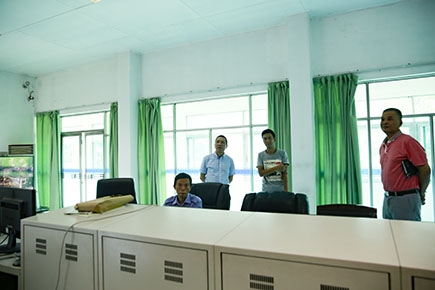 圖為集團(tuán)副董事長(zhǎng)、總經(jīng)理張建平檢查大溪嶺隧道所監(jiān)控室