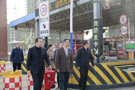 圖為市行政服務(wù)中心黨委副書記金偉一行在臺州收費站參觀學(xué)習(xí)
