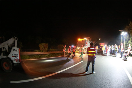 反復溝通,施工保質(zhì)保進度。要在車流量極大的主干線上夜間順利施工,不僅對工程質(zhì)量、進度負責,更要對安全保暢負責,不能有半點疏忽,不允許絲毫麻痹,而且涉及面極廣。不僅涉及工程部與施工監(jiān)理單位,更涉及到高速交警、路政及運營管理等多個部門,前期工程部協(xié)交警、營運部、監(jiān)理、施工等各相關單位就施工方案反復論證,一次次的討論與交流,計劃改了又改,從提前發(fā)布公告到路口設立標志,從預警車輛安排到分流時間節(jié)點,從搶險預案到應急小分隊建立,路面的反復測量,綠化養(yǎng)護的同期推進.....千頭萬緒,在于每一個細節(jié)的反復論證。一直到11號下午,確定了最合理有效的交通組織方案,施工前的安全和技術方面有了最后的交底,器械設備、材料、人員班組配備等一一清點得到最終確認。