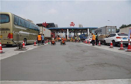 近日,隨著混凝土養(yǎng)護(hù)的結(jié)束,溫嶺西收費(fèi)站車道維修工程圓滿完工,收費(fèi)車道恢復(fù)正常通行。此次工程對(duì)溫嶺西收費(fèi)站第四、五車道進(jìn)行了徹底維修,包括挖除原車道破損路面、注漿、安放鋼筋網(wǎng)、澆筑混凝土、混凝土養(yǎng)護(hù)、標(biāo)線恢復(fù)等工序。