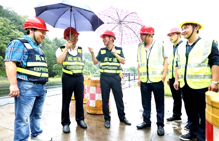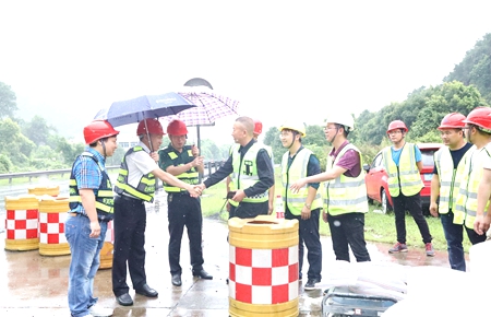 7月23日上午,集團總經(jīng)理張建平冒著大雨到大溪嶺—湖霧嶺隧道機電改造現(xiàn)場視察指導工作,詳細了解工程進展情況。