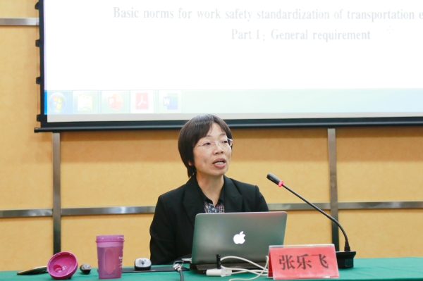 圖為項(xiàng)同富主持培訓(xùn) 本次培訓(xùn)邀請(qǐng)了高級(jí)工程師、安標(biāo)考評(píng)員張樂飛到場(chǎng)為大家講解培訓(xùn)內(nèi)容。此前,她完成過對(duì)浙江滬杭甬高速公路股份有限公司、浙江金麗溫高速公路有限公司、黃山長(zhǎng)江徽行高速公路有限責(zé)任公司等國(guó)一級(jí)安標(biāo)指導(dǎo)工作,并順利通過考評(píng)。